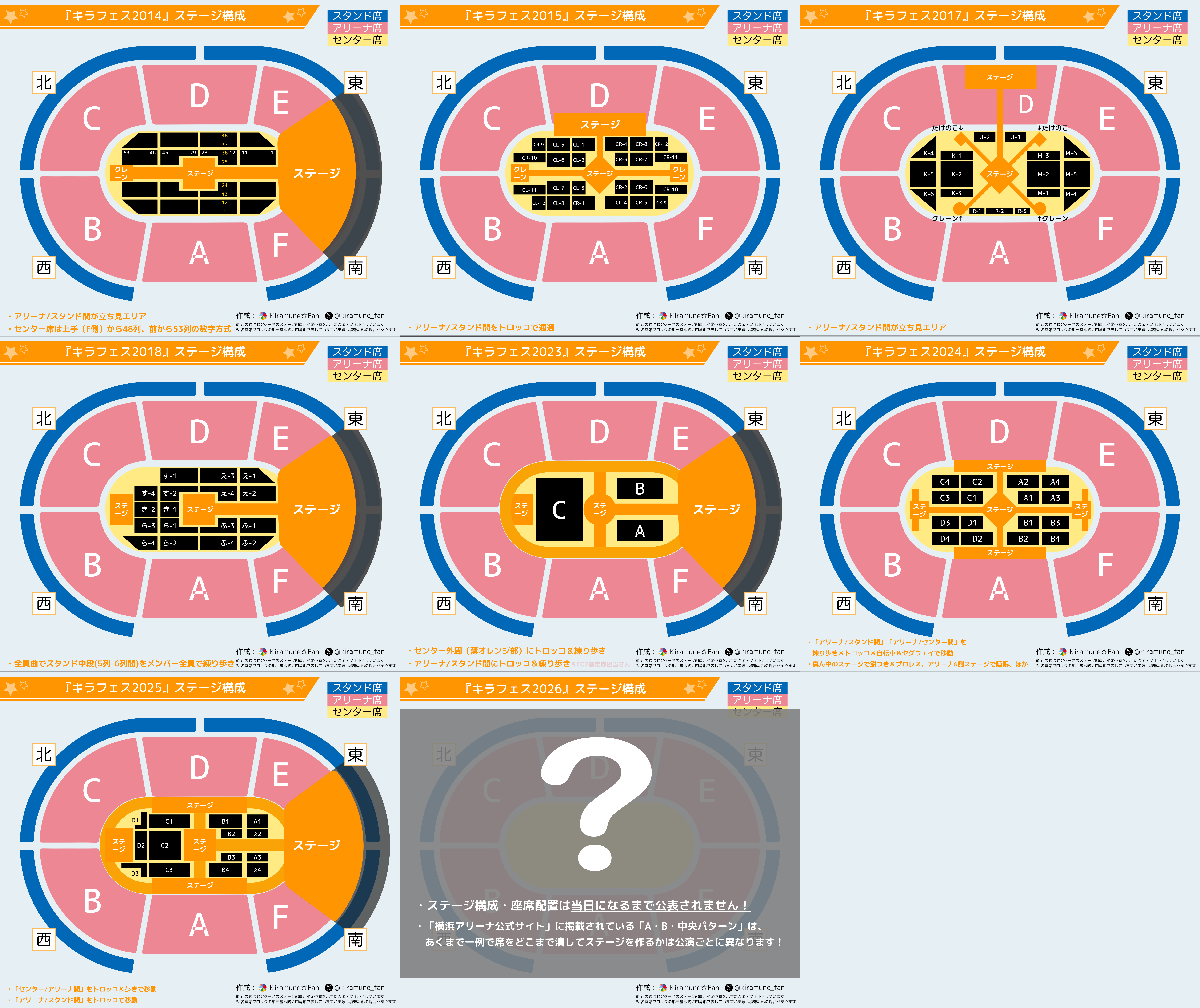 以下は過去「横浜アリーナ」で開催されたキラフェスのステージ構成(7回分)です。